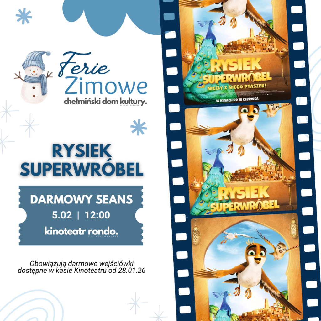 🎬 ZAPRASZAMY NA BEZPŁATNY SEANS! 🎬 Już 5 lutego o godz. 12:00 zapraszamy do Kinoteatru RONDO na darmowy seans bajki „Rysiek, super wróbel”. 🐦 To